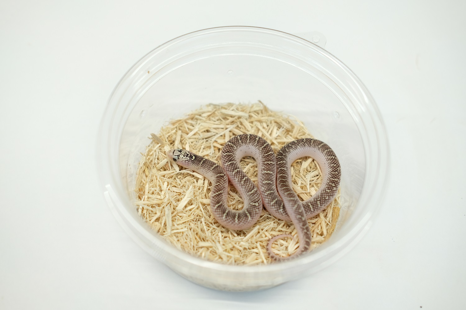 背中のみに模様が残り、サイドは白くなります。ラットスネークなどで見られるリコリススティックです。 生体になるとサイドの白さが際立ってより綺麗になります。