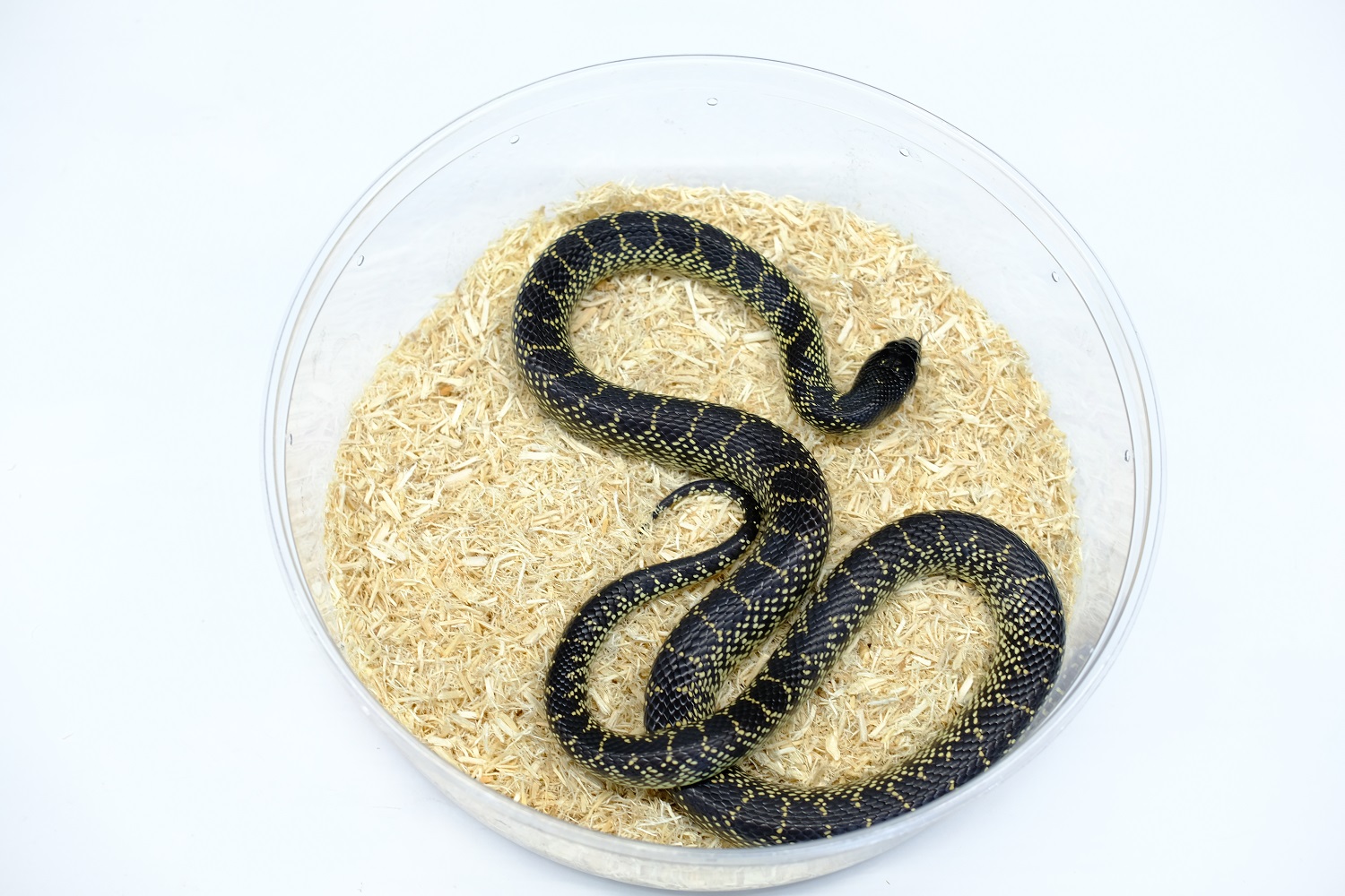 黒い頭、黄色い体に黒い霜降り模様の渋いヘビです。 とにかくカッコイイですね! 入荷も少なくなりました。育ったサイズなので是非繁殖に挑戦してください。