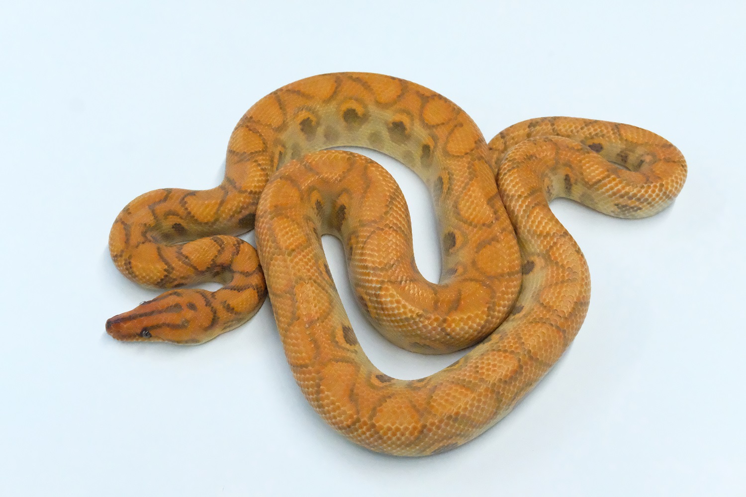 膜に包まれたような淡いオレンジ色が非常に美しいブラニジのハイポです。大人しいのでハンドリングも可能です。